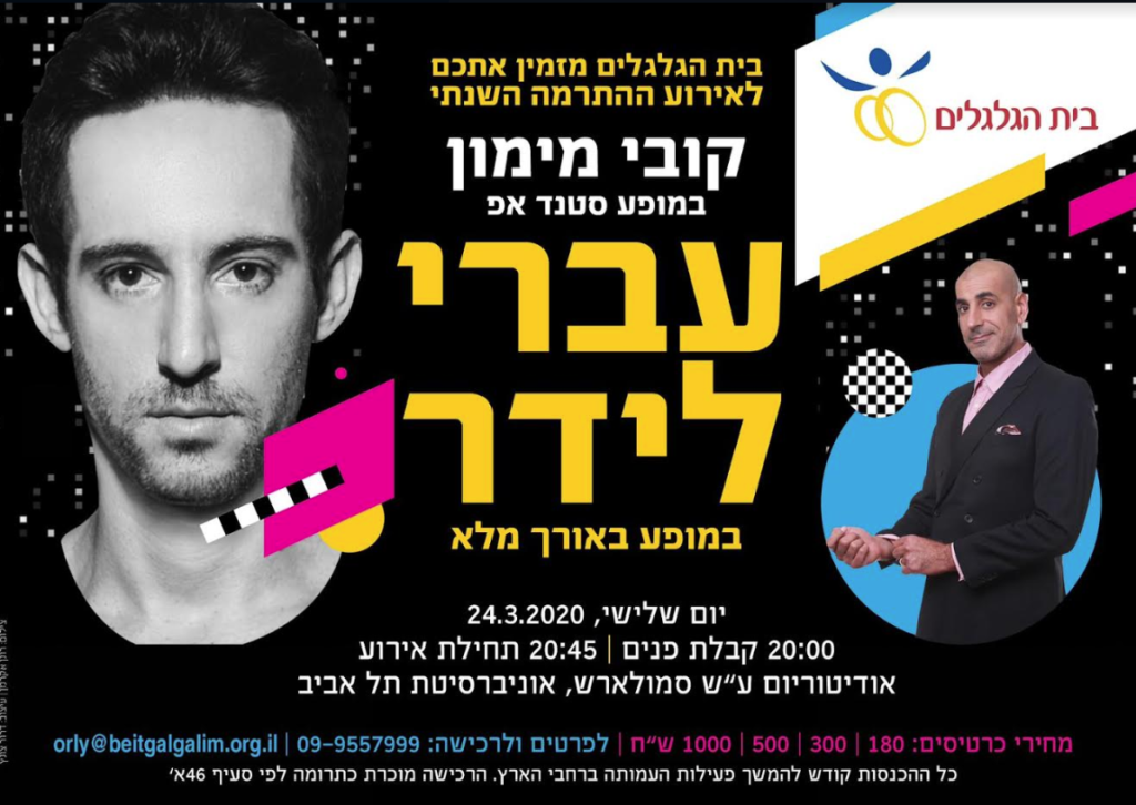 עמותת "בית הגלגלים" מהווה בית שני למאות צעירים עם מוגבלות פיזית ובני משפחותיהם, במטרה לקדם את שילובם בחברה. לעמותה שישה בתים מונגשים ברחבי הארץ ומאות מתנדבים מסורים המלווים את החניכים לחיים עצמאיים.
