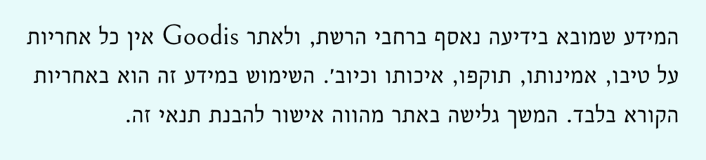 הכתבה משמשת כפורטל קישורים בלבד, כשירות לציבור, ואתר goodis לא נושא באחריות כלשהי להטבות וטיבן.